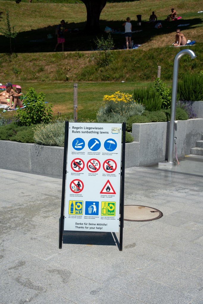 Im Wasser landen Bakterien und Harnstoffe. Nicht nur vom Urin, sondern auch vom Fett der Haut. Deshalb sei es sehr wichtig, vor dem Baden zu duschen, betont der Bademeister: «Wir erinnern die Menschen immer wieder daran und haben sogar Infotafeln aufgestellt, doch viele duschen trotzdem nicht.» An Spitzentagen kommen bis zu 2000 Gäste in die Badi. Dann stossen sowohl das Becken als auch das Personal an ihre Grenzen. «Bei großen Menschenmassen und Wärme verpufft das Chlor schnell. Das ist vor allem, weil Regeln nicht befolgt werden. Heutzutage ist das ein Wohlstandsproblem.» Das gelte auch fürs Liegenlassen von Müll auf der Liegewiese. Frei’s Wunsch: Mehr Rücksicht und Wertschätzung für die Anlage, so dass zum Beispiel nach dem Beachvolleyball der Sand wieder glattgezogen wird.